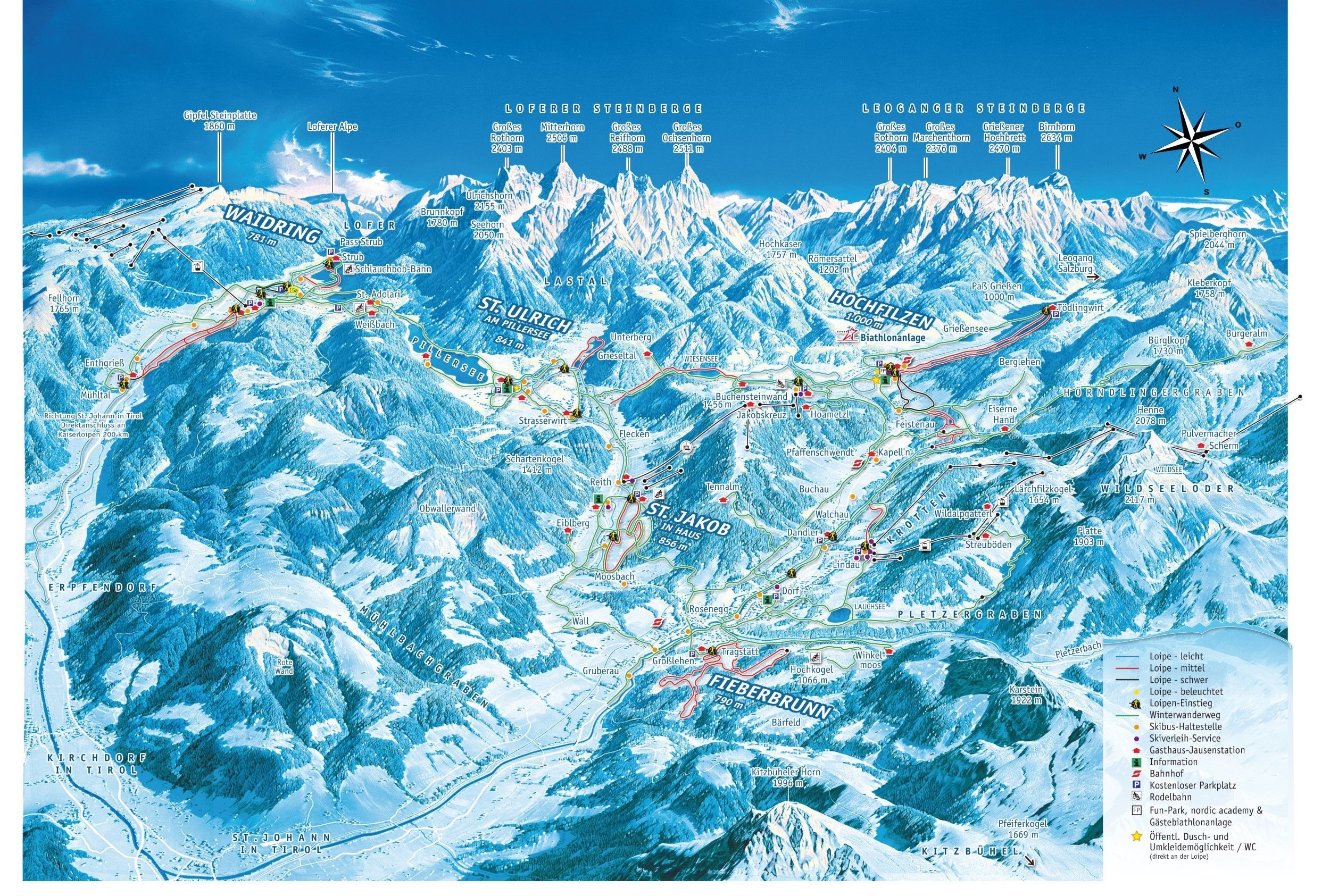 L'offre de ski de fond est complétée par 20 autres kilomètres de pistes autour de Fieberbrunn. Au total, la région offre une expérience de ski de fond variée et de grande qualité pour les débutants, les expérimentés et les professionnels - en technique classique ou en skating.